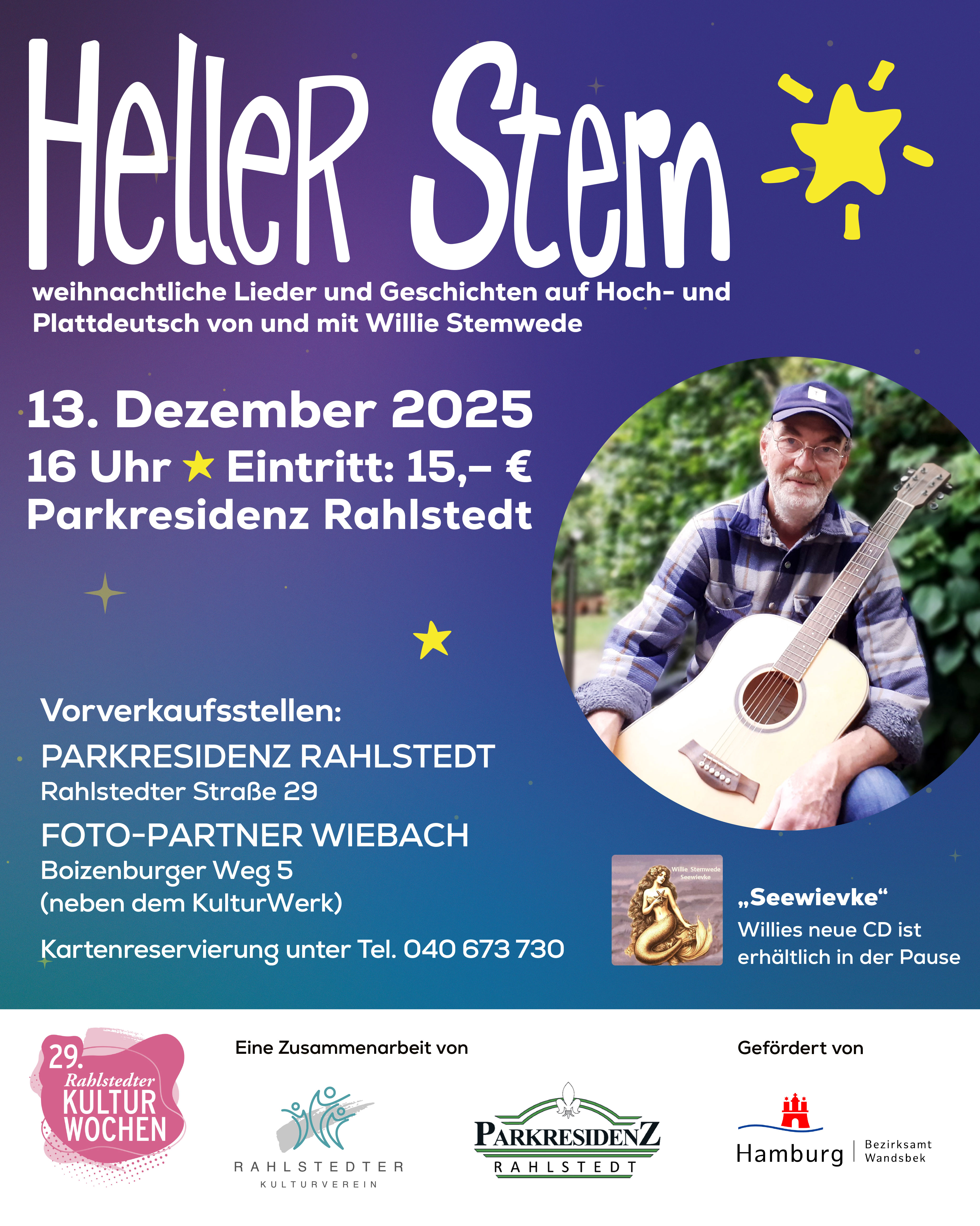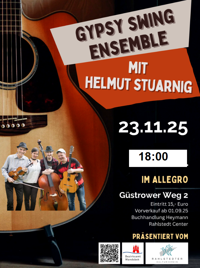 Karten zu 10/ 5/ 3 € an der Abendkasse und Vorverkauf bei Heymann Rahlstedt
