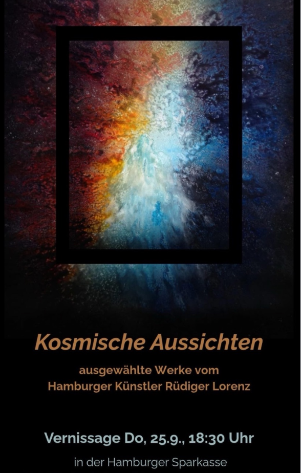Im Spannungsfeld zwischen Kosmischen Aussichten und irdischer Realität sind diese farbwirbelnden Werke zu betrachten. Der ehem. Produktdesigner für hochwertige Flakons lässt mit unterschiedlichen Techniken die Farben sprechen.